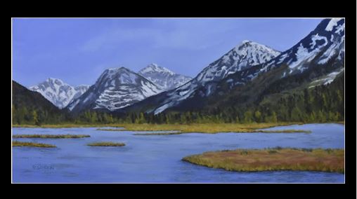 24" x 48" framed Original Oil painting "Tern Lake" by Rotarian Bob Green. Bob's work has been shown in local galleries and is now quite sought after.